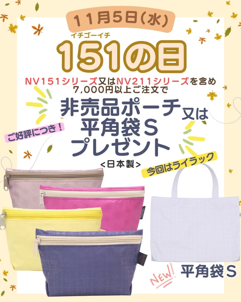 5,000円以上お買い上げのお客様に、非売品のスリムポーチを差し上げています。